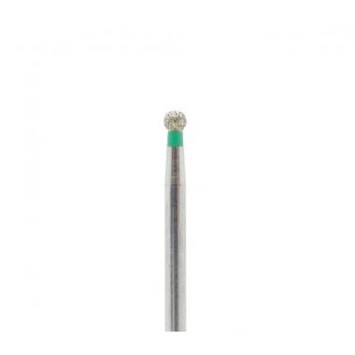 Рабочая часть алмазного бора BR-31C шаровидной формы имеет грубую абразивность с зернами размера от 125 до 150 мкм и маркируется зеленым цветом. Инструмент вставляется в турбинный наконечник, при этом не вибрирует, что обеспечивает безопасную и эффективную работу.